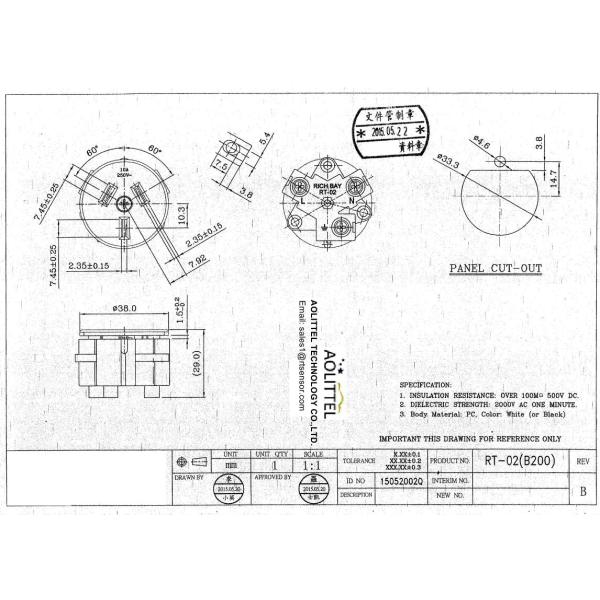 Insulation Resistance: 100MΩ 500V DC/1 minute